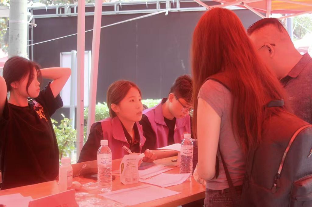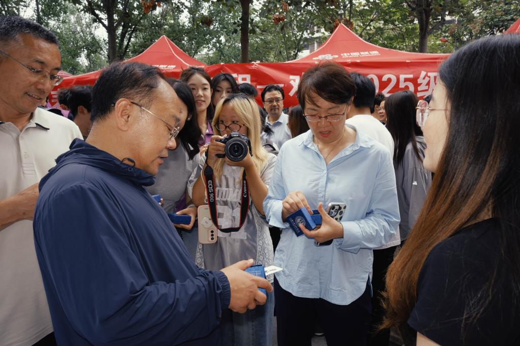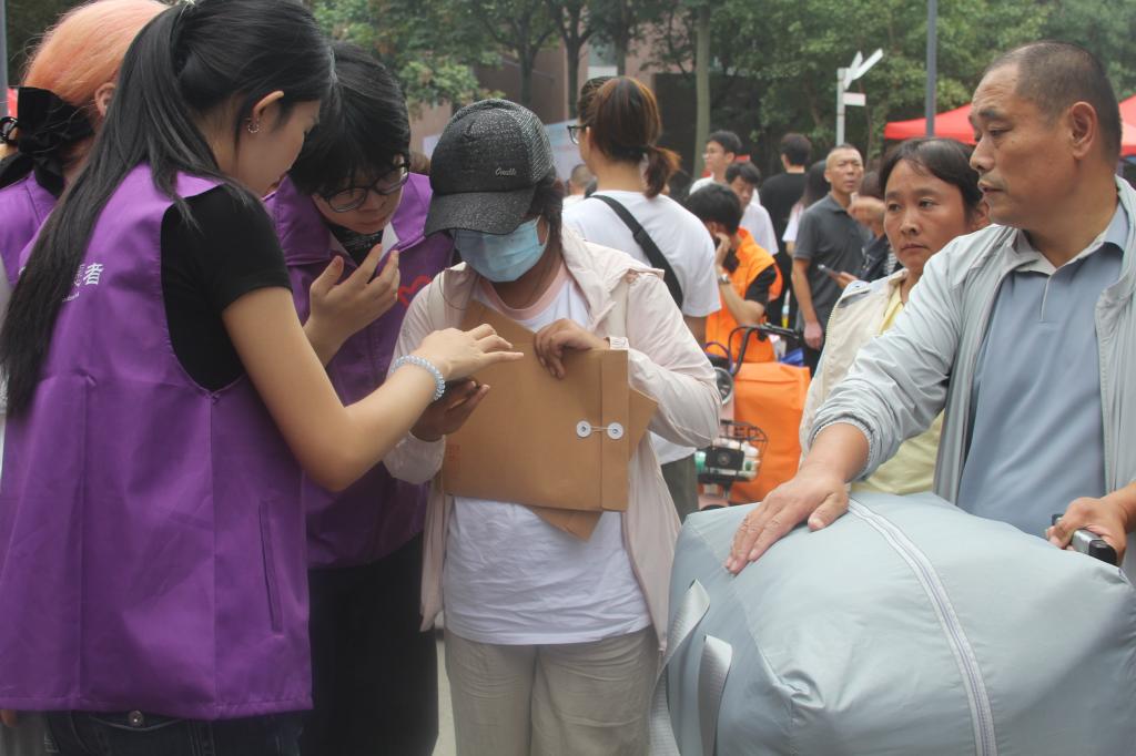 身着统一服装的导引志愿者手持醒目的导引牌,守候在新生入学门口。他们不仅热情地为新生指引前往学院报到的路线,更主动上前询问行李搬运需求。